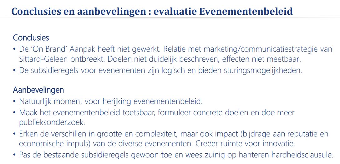 Daarom zal SPA instemmen hiermee want het is SPA heel erg duidelijk dat het beleid de afgelopen decennia gewoon gefaald heeft om Sittard-Geleen positief in de markt te zetten. Zo’n negatief imago dat we hebben (iets waar SPA al jaren op wijst !) heeft leegstand van winkels en centra, weinig toestroom van nieuwe bewoners, weinig toerisme, lagere woningwaarden, weggaan van jongeren na hun studie etc tot gevolg. SPA hoopt dat het professioneel aanpakken van stadsmarketing er WEL voor zorgt dat Sittard-Geleen de top-50 haalt.